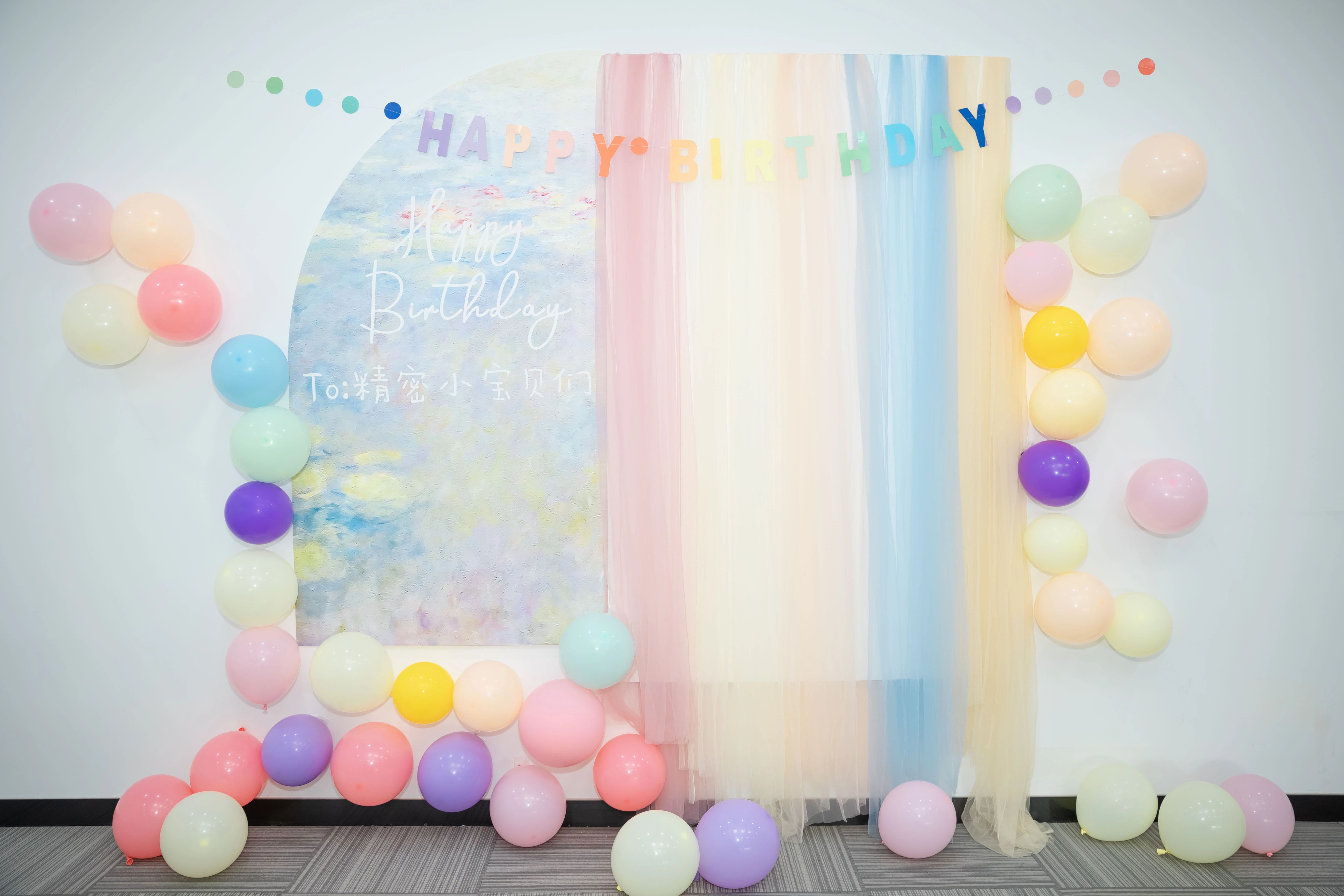 馬卡龍色氣球簇?fù)碇嗡彴愕谋尘鞍澹岷凸饩€輕拂過寫著 “To:精密小寶貝們” 的俏皮掛飾,甜蜜蛋糕靜候主角登場(chǎng)。每一處裝飾都承載著美好祝愿,每一抹色彩都傳遞著幸福溫度,讓壽星們沉浸在無與倫比的幸福之中。
