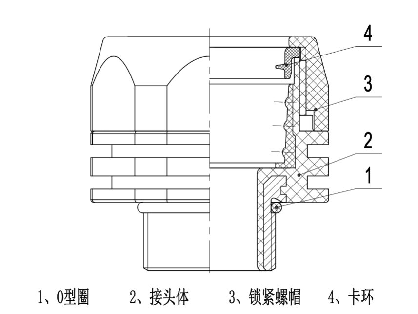 1.主要由4部分組成,分別是1、O型圈,用以密封螺紋端