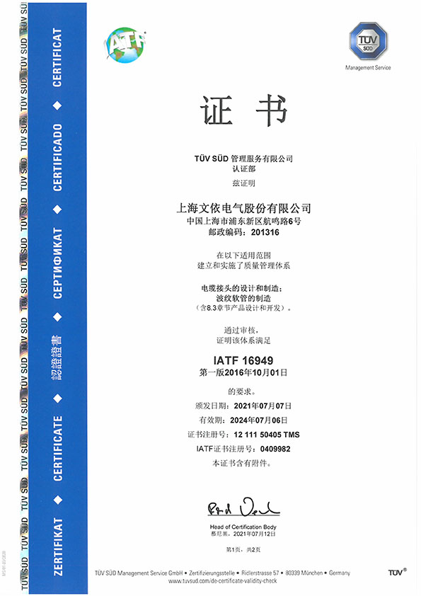 文依電氣貫徹落實(shí)規(guī)范化、標(biāo)準(zhǔn)化、精細(xì)化的管理方針,通過了TUV頒發(fā)的ISO9001:2015、IATF16949:2016質(zhì)量管理體系認(rèn)證和IEC80079-34防爆質(zhì)量管理體系、ISO14001環(huán)境管理體系認(rèn)證及ISO45001職業(yè)健康安全認(rèn)證。多年以來被評(píng)為“上海市文明單位”、“上海市科技小巨人企業(yè)”、“上海市高新技術(shù)企業(yè)”、上海市“專精特新”企業(yè)、“上海市浦東新區(qū)研發(fā)機(jī)構(gòu)”、“上海市浦東新區(qū)安全生產(chǎn)示范企業(yè)”、“上海市浦東新區(qū)質(zhì)量標(biāo)桿企業(yè)”、“上海市浦東新區(qū)消防安全先進(jìn)集體”、“上海市浦東新區(qū)商業(yè)秘密保護(hù)創(chuàng)新試點(diǎn)單位”以及浦東新區(qū)航頭鎮(zhèn)“明星企業(yè)”等榮譽(yù)稱號(hào),公司產(chǎn)品于2024年12月通過了“上海品牌”認(rèn)證,并連續(xù)多年被上海市工商局評(píng)為“守合同、重信用”AAA級(jí)單位。